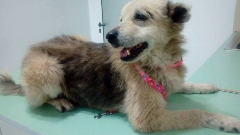 Sunny was 4 months in a room in the clinic and had chemo therapy and I was hoping he got the chance to be adopted at the clinic, where many people come. But Albanian people did not want this sweet older dog because of his limping leg.