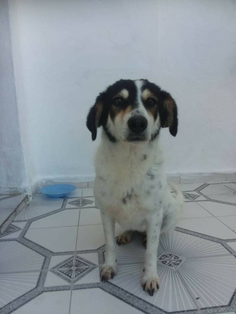 I found her all allone and looking so sad with her head down in the middle of a field in Tirana Albania. It was cold and it rained. I had seen her before. She knew I was feeding all the straydogs and taking care of them. I walked to her and placed food in front of her. She was not afraid for me and my dog. It was as if she was waiting to be found by me. I promised her there and then that I would rescue her aswell.